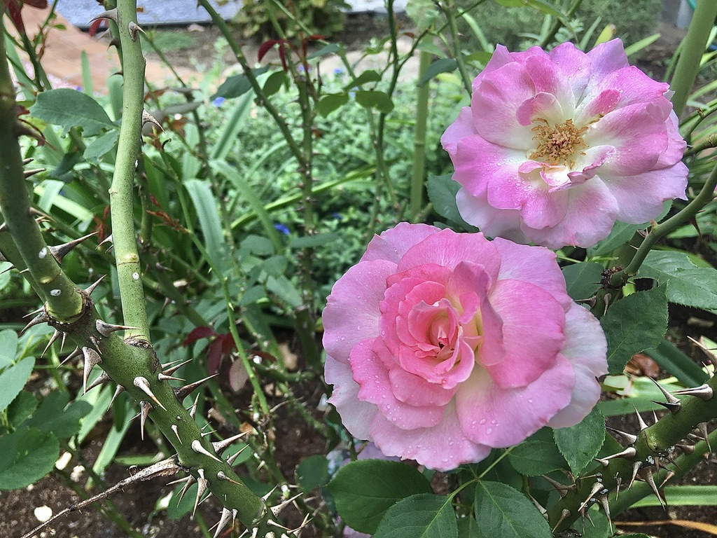 花壇内には、秋の日差しを浴びて心地良さそうに、バラ・ピース、バラ・マチルダやアメリカンブルーなどのお花たちが、賑やかそうに季節を彩ってくれていました。
