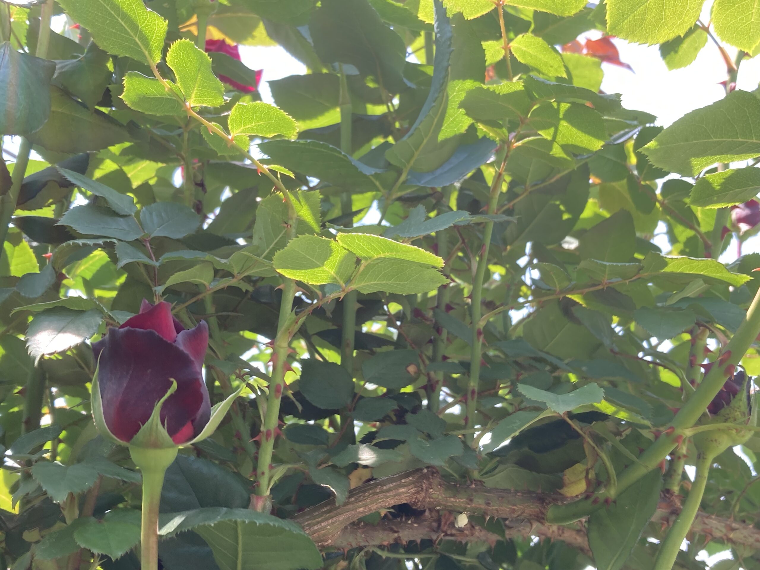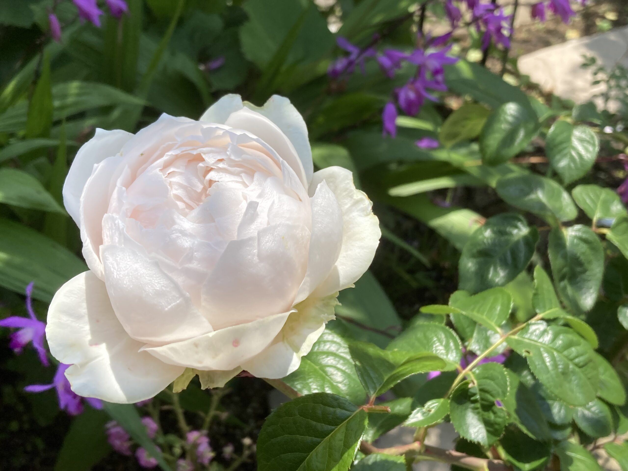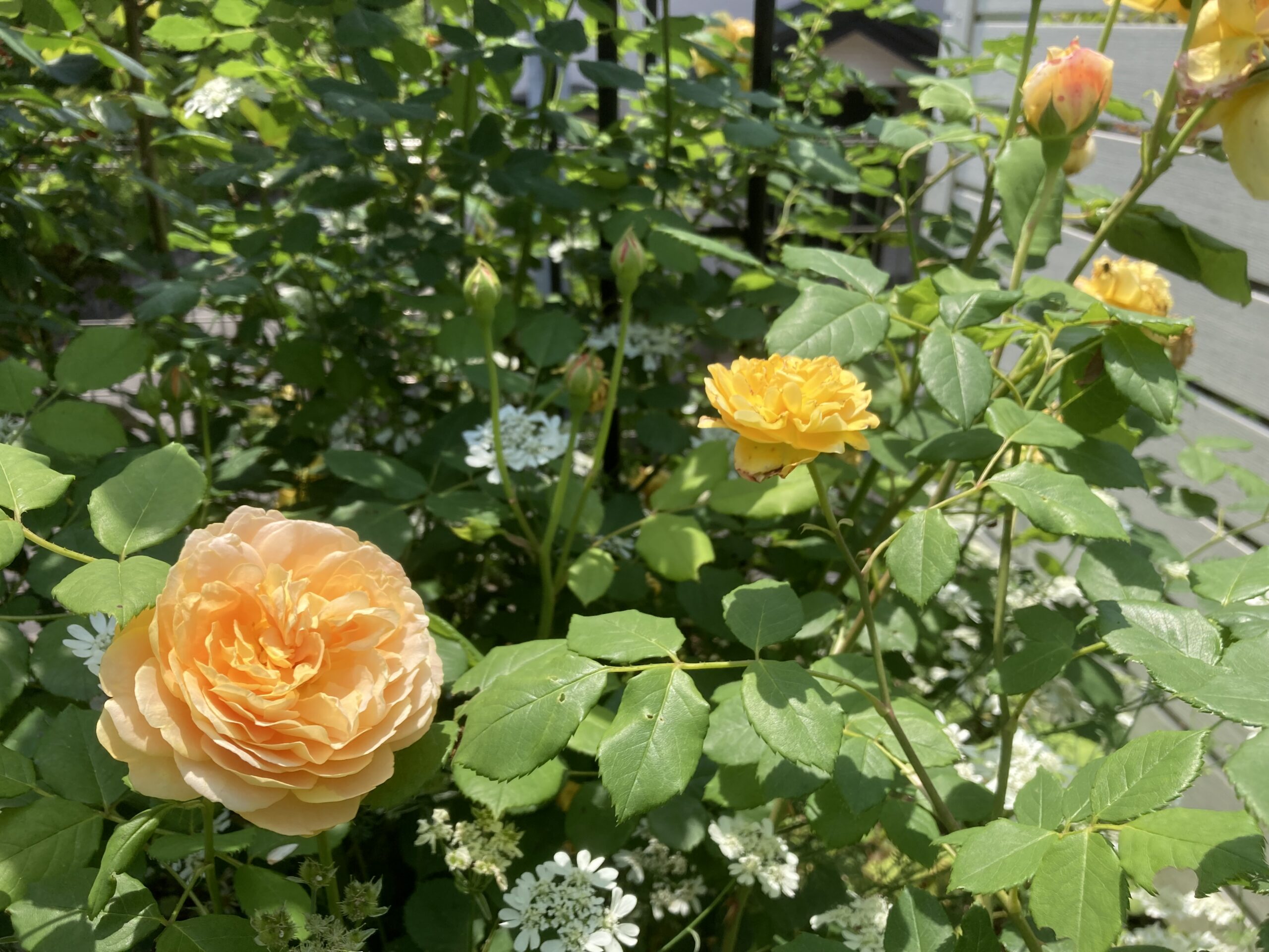 心地よい日差しを浴びて、多様な特徴を持った個性的なバラたちがキラキラとしていて、お庭で色とりどりに着飾っているようでした。
