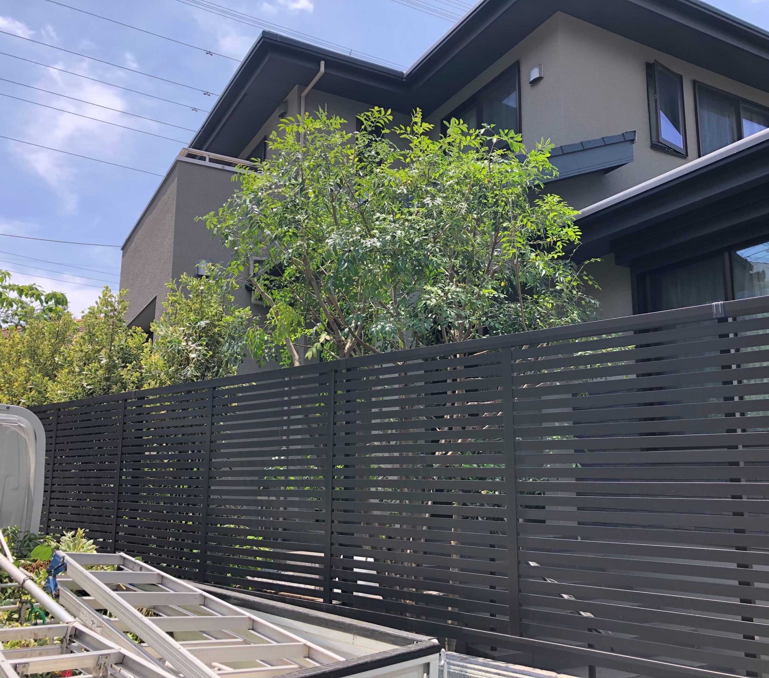 1年前にお庭の造園工事をさせて頂いたお客様から、エントランスのシマトネリコが大きくなったので