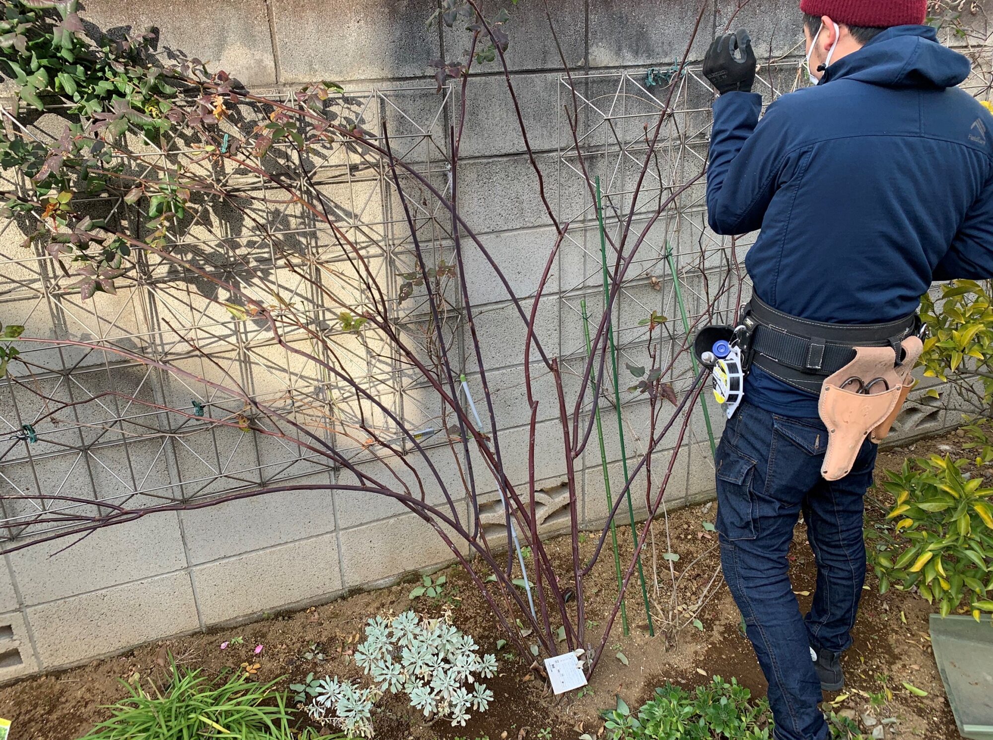 しっかりと冷え込む今年の冬ですが、春に向けて準備を整えるタイミングでもありますので、お客様のバラのメンテナンスに、この時期は伺わせて頂いております。