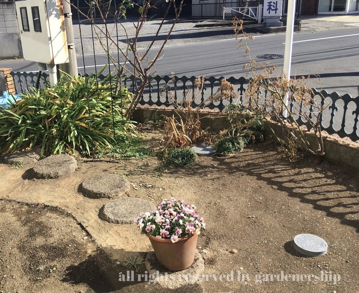 元々、お庭に植えられていて、今後も活かして行くことができる植物達は、配置を変えて移植し、新たにローズなどのお庭を彩る植物たちを 加えさせていただき、且つそれでいて、ローメンテナンスなお庭にさせていただきました。